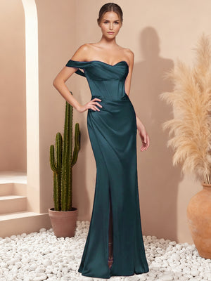 Sheath/Column Bridemaid Dresses Satin One-Shoulder Sweetheart Sleeveless Floor-Length High Side Split Prom Dresses