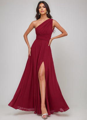 A-Line/Princess One-Shoulder Sleeveless Floor-Length Ruched Bridesmaid Dresses With Side Slit