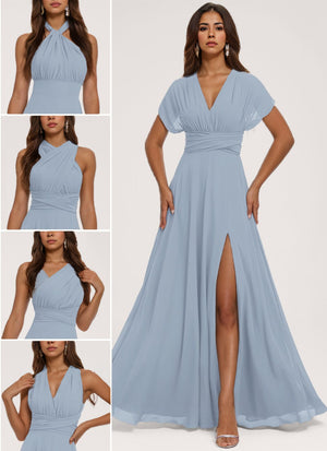 A-Line/Princess Convertible Infinity Bridesmaid Dresses with Pleats