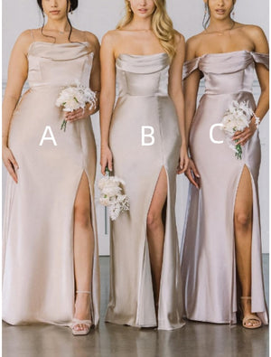 Sheath/Column Satin Off-the-Shoulder Sleeveless Floor-length Long Bridesmaid Dresses With Split Side