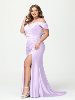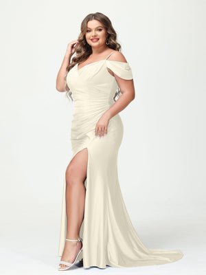 Sheath/Column Spaghetti Straps Cowl Neck Sleeveless Plus Size Bridesmaid Dresses With Split Side
