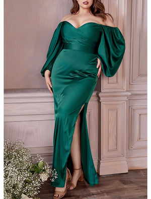 Sheath/Column Off-the-Shoulder Floor-length Plus Size Prom Dresses