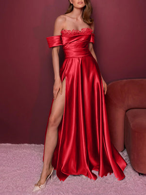 Sheath/Column Off-the-Shoulder Long Dresses With Split Side