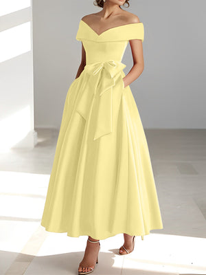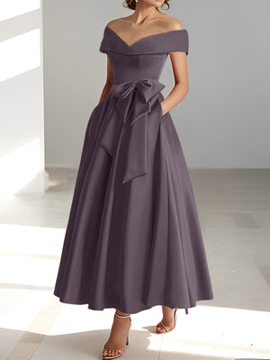 A-Line/Princess Off-the-Shoulder Sleeveless Ankle-Length Mother of the Bride Dresses with Pockets