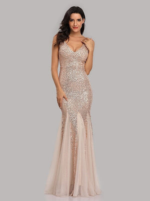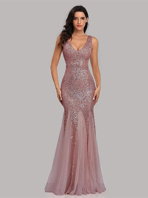 Mermaid/Trumpet V-Neck Sleeveless Floor-Length Party Cocktail Dress with Sequins