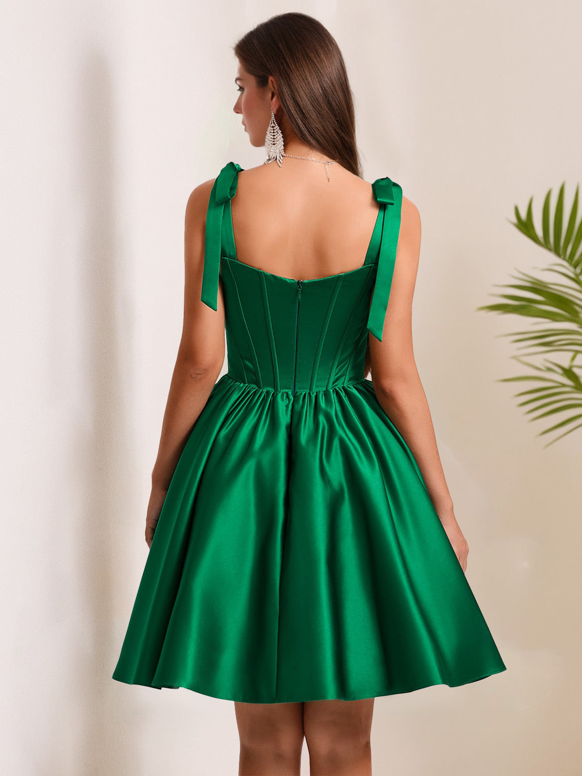 #N342685 A-Line/Princess Square Neckline Pleated Short/Mini Homecoming Dresses with Shoulder Bow Ties