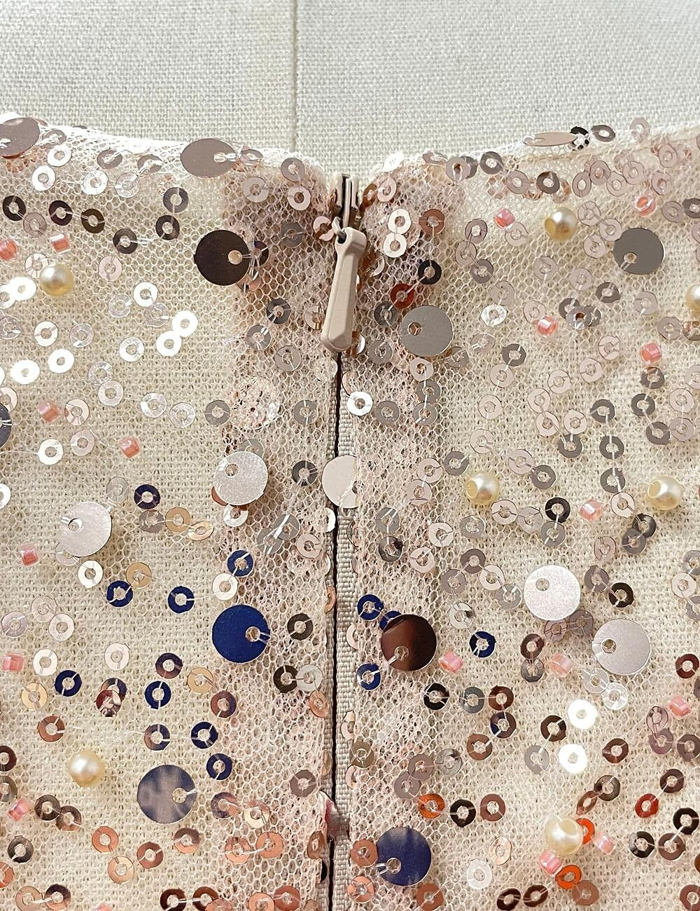 • Mermaid Sequin Evening Gown Prom Dress Ruched Satin Dress Long Sleeves Masquerade Floor Length Illusion Neck with Pearls Overskirt Dress