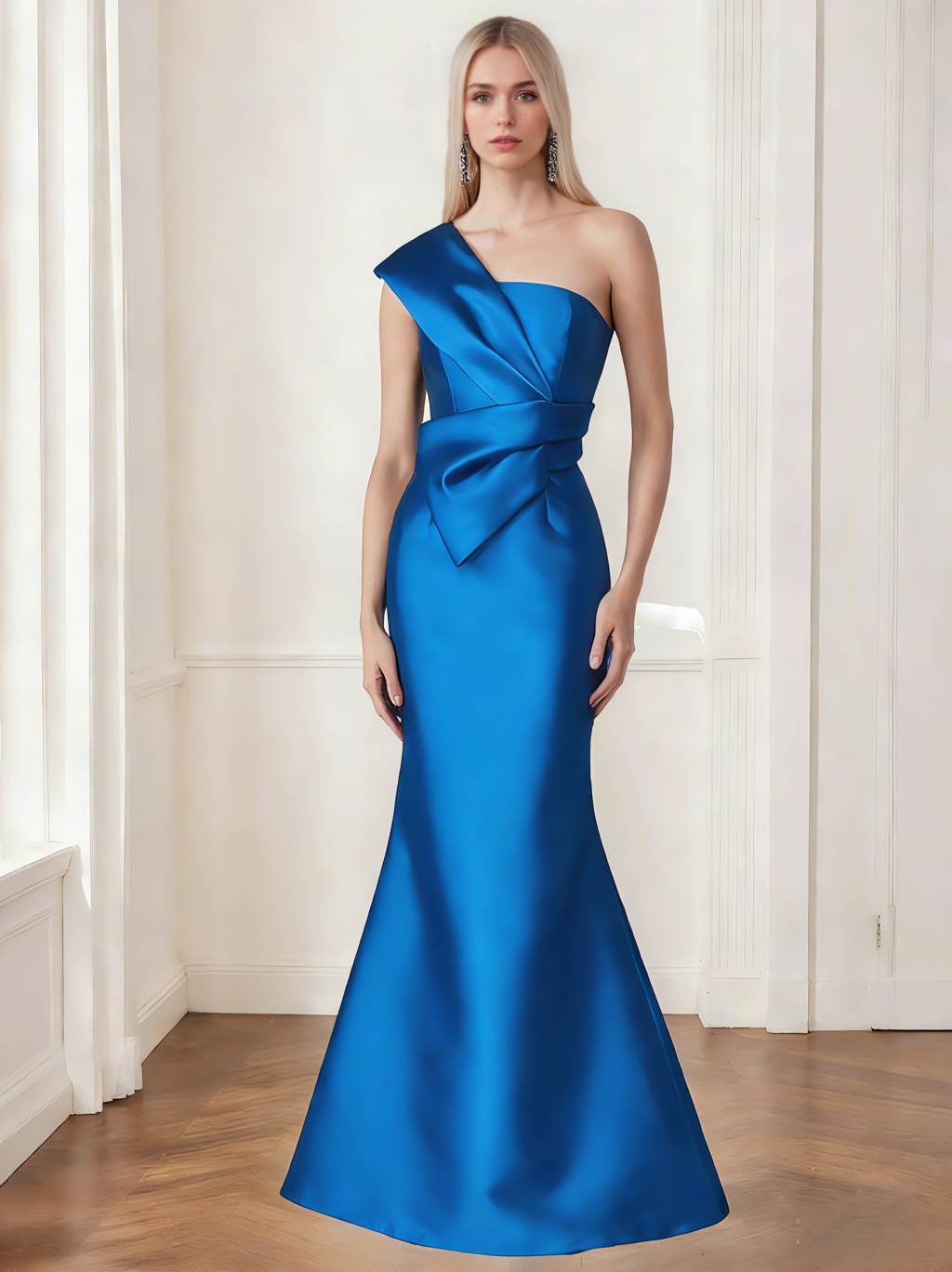 #N2311893 Trumpet/Mermaid Evening Dress One-Shoulder Satin Dress With Bow Sleeveless Floor-Length Mother of the Bride Dresses