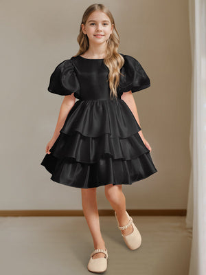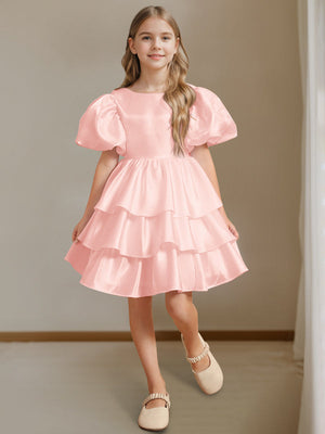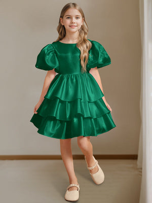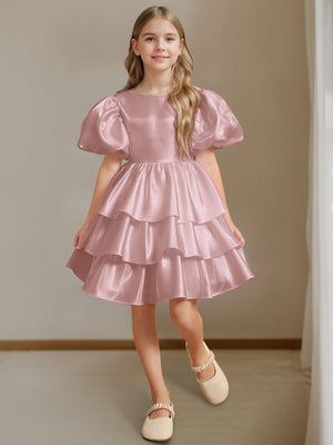 A-Line/Princess Short Sleeves Ruffled Flower Girl Party Dresses with Rhinestones