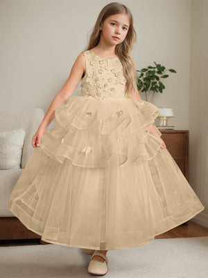 Ball-Gown Round Neck Sleeveless Ankle-Length Flower Girl Dress with Lace