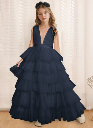 Ball-Gown V-Neck Sleeveless Floor-Length Flower Girl Dress With Ruffles