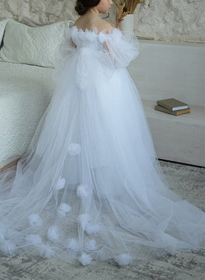 A-Line/Princess Off-the-Shoulder Tulle Flower Girl Dresses with Applique & Bowknot