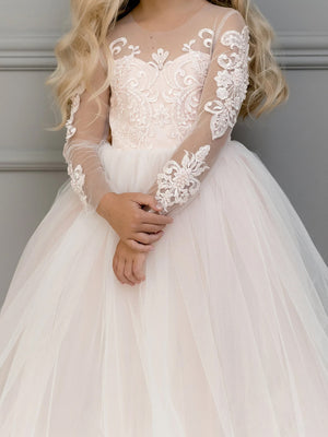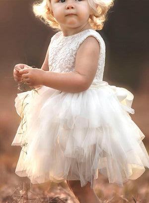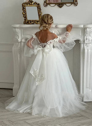 Ball Gown Princess Tulle Flower Girl Dresses with Applique
