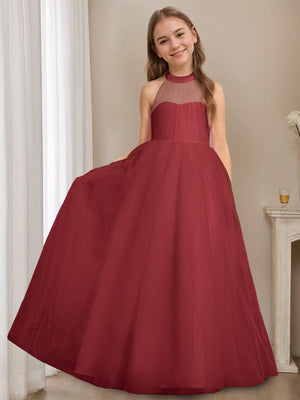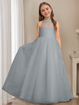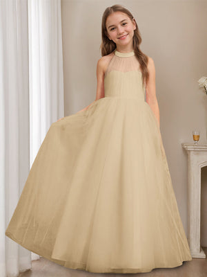 A-Line/Princess Halter Neck Sleeveless Floor-Length Flower Girl Dress with Bowknot