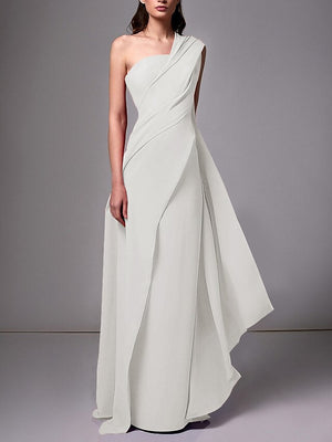 Sheath/Column One-Shoulder Sleeveless Evening Dresses With Pleats Ruched