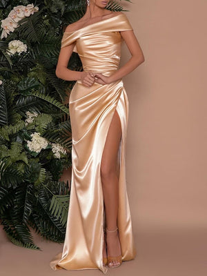 Sheath/Column One-Shoulder Floor-length Prom Silk Satin Dresses