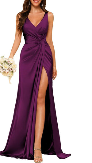 A Line/Princess V Neck Sleeveless Floor-Length Bridesmaid Dresses with Split