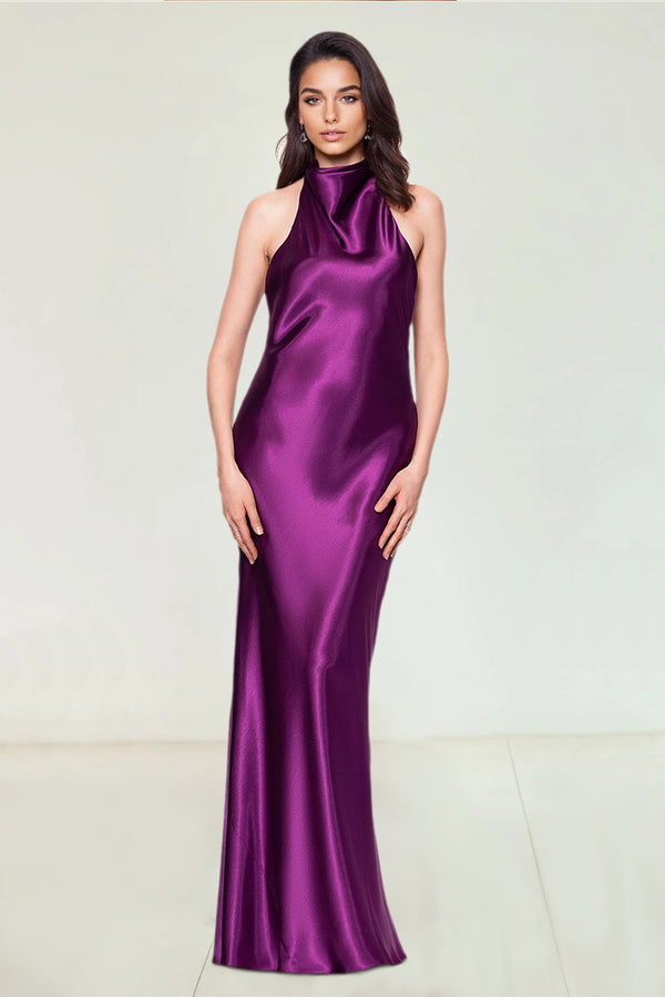 #N353310 A-Line/Princess Satin Halter & Bow neck Sleeveless Floor-Length Evening Dresses