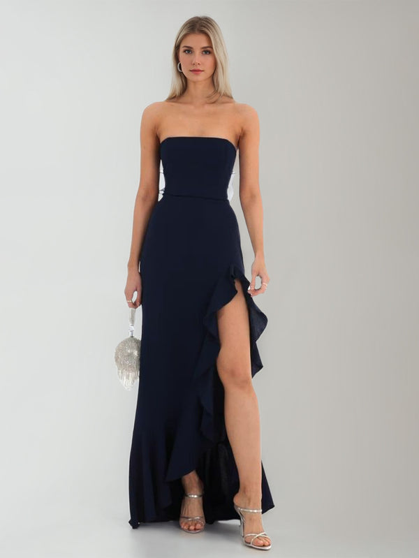 #N887001 A-Line/Princess Strapless Sleeveless Crepe Bow Evening Dresses with Side Slit
