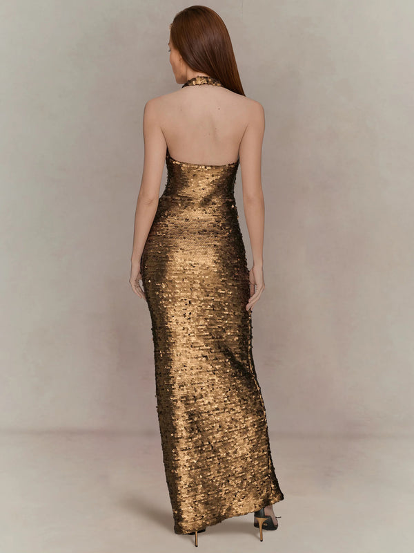 #N353610 Sheath/Column Evening Dress Sequin Halter Sleeveless Floor-Length Party Dresses With Side slit
