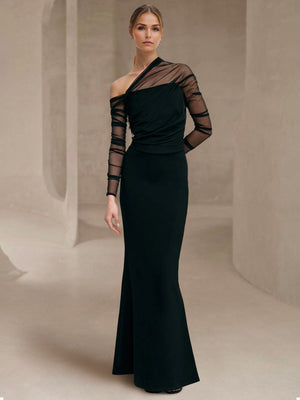 Sheath/Column Evening Dress One-Shoulder Floor-length Wedding Guest Dress Stretch Crepe Dresses