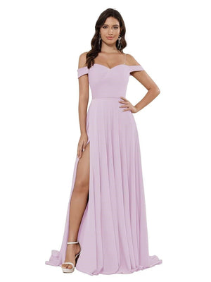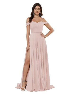 A-Line Evening Dress Stain Spaghetti Straps&Off-the-Shoulder Sleeveless Floor-Length Prom Dresses With High Side Slit&Back Zipper
