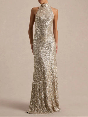Mermaid Sequins Eveing Dress Formal Halter Neck Sleeveless Floor Length Sparkle Christmas Party