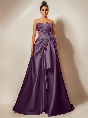 A-Line/Princess Strapless Sweetheart Floor-Length Prom Evening Dresses With Ruched & Split Side