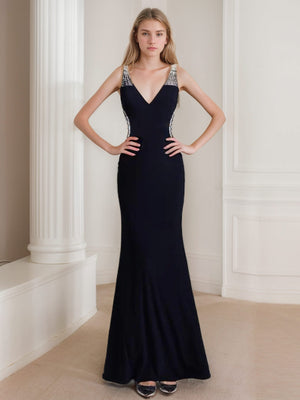 Sexy Trumpet/Mermaid V-Neck Sleeveless Evening Dresses with Pearl