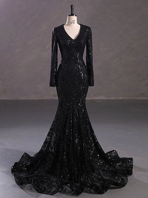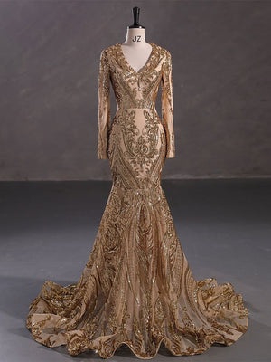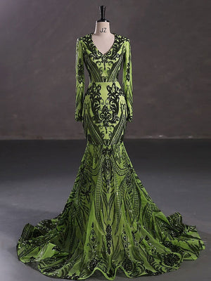 Trumpet/Mermaid V-Neck Long Sleeves Floor-Length Evening Dresses with Sequin