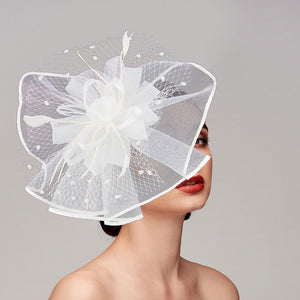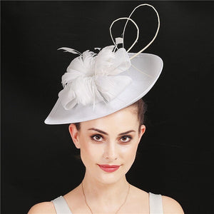 Elegant Net Saucer Hat Fascinator Hats Headpiece Flower Bow & Feather