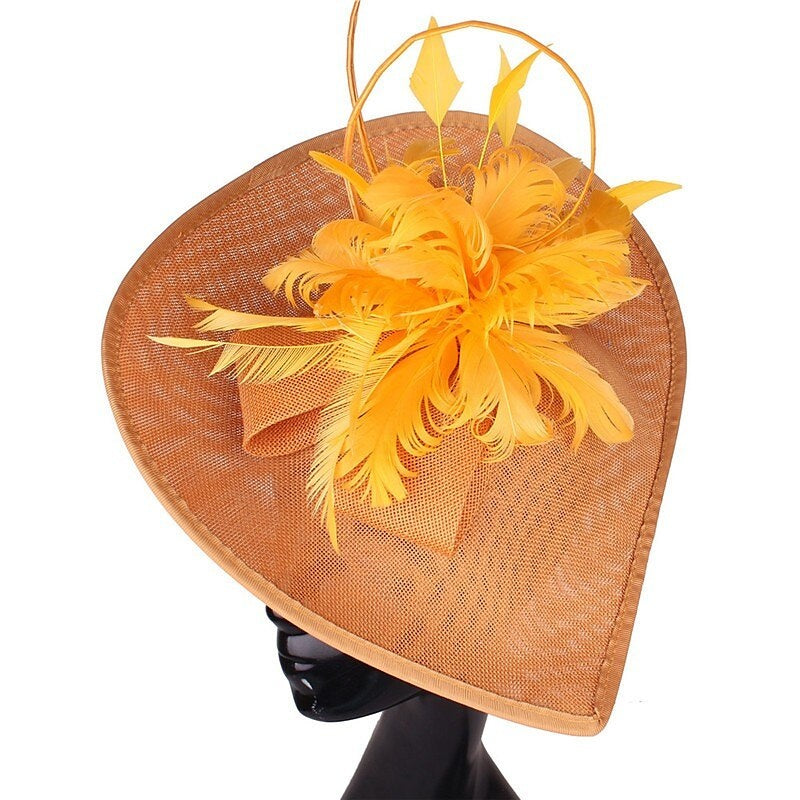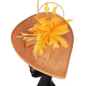 Gold Floral Feather Kentucky Derby Hat Horse Race Retro Fascinators/Headpiece