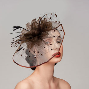 Elegant Net Saucer Hat Fascinator Hats Headpiece Flower Feather & Tulle