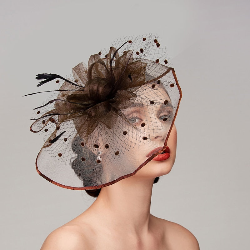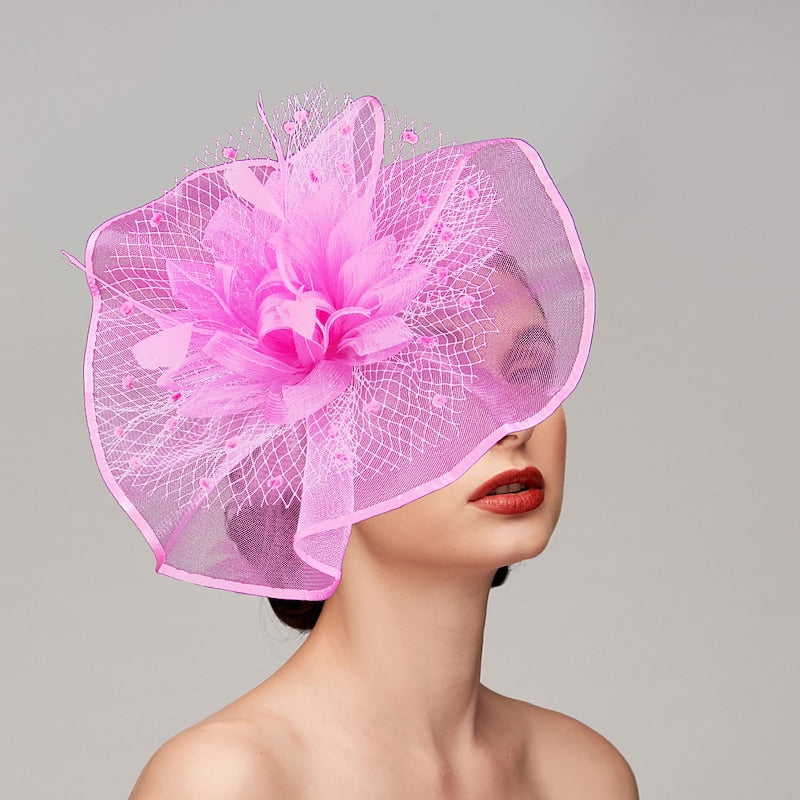 Material: Net; FeathersOccasion: Wedding; Horse Race; Ladies DayEmbellishment: Flower; Bow; Feather