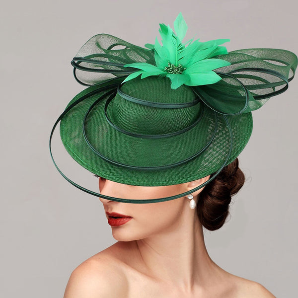 #N1041201W Elegant Net Saucer Hat Fascinator Hats Headpiece Flower Bow & Rhinestone