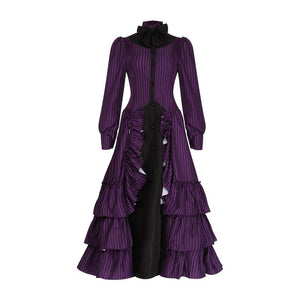 A-Line/Princess Jewel Neck Long Sleeves Floor-Length Gothic Retro Pleated Cosplay Dress