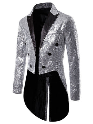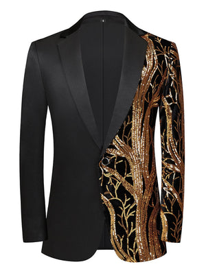 Men's Fashion Disco Sequin Pattern Tailored Fit Single Breasted One-button Blazer Jacket