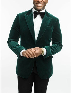 Green Men's Tailored Fit Single Breasted One-button Velvet Formal Jacket