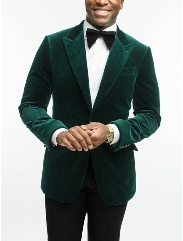 #N3120669 Green Men's Tailored Fit Single Breasted One-button Velvet Formal Jacket