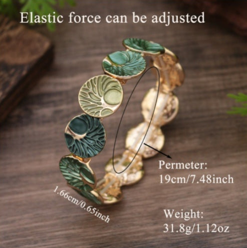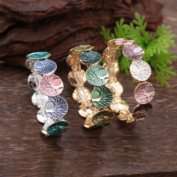 #N2041118W Delicated Enamel Round Artistic Floral Stretch Bracelet