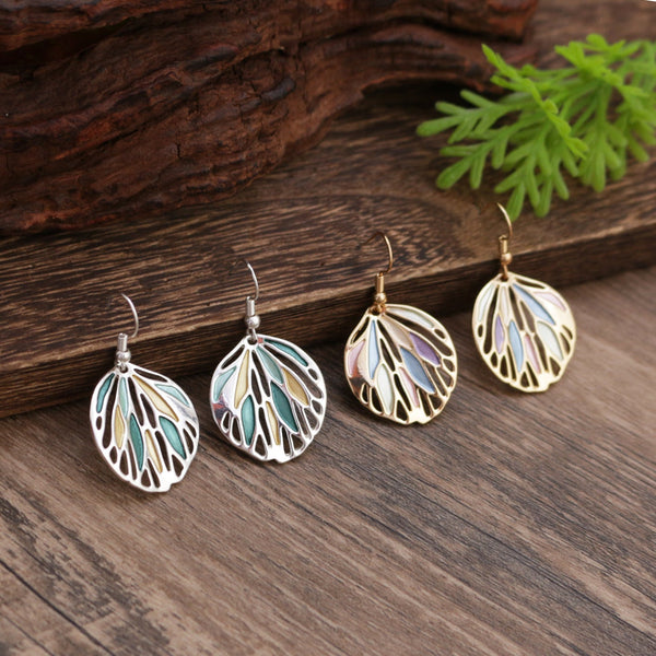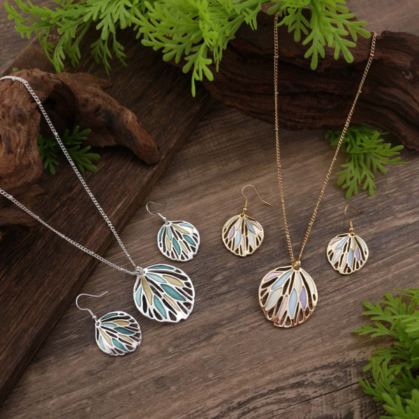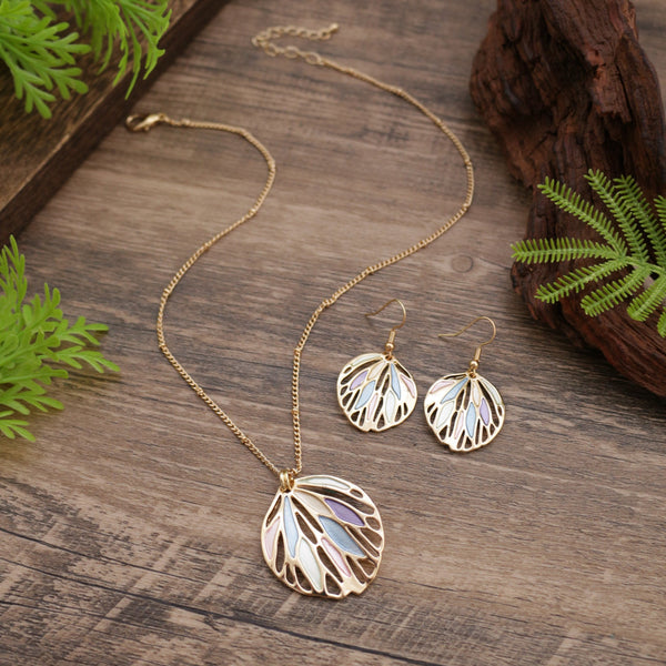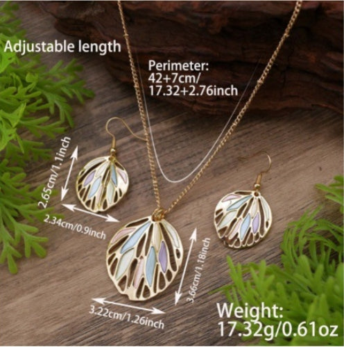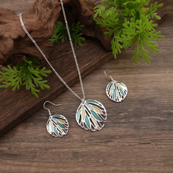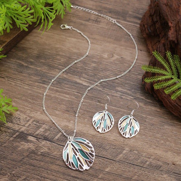 #N1441149W Stylish Elegant Enamel Leaf Earrings Necklace Two Pieces Jewelry Set