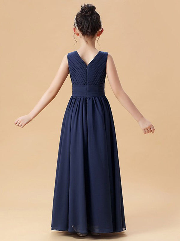 #N21110001W A-Line/Princess V-Neck Sleeveless Ruched Junior Girl Bridesmaid Dresses with Ruffles