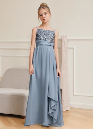 A-Line/Princess Spaghetti Straps Junior Girl Bridesmaid Dresses with Sequins