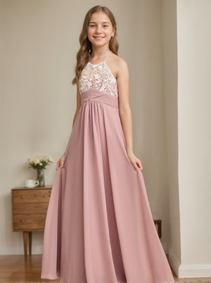 A-Line/Princess Halter Sleeveless Floor-Length Junior Bridesmaid Dress