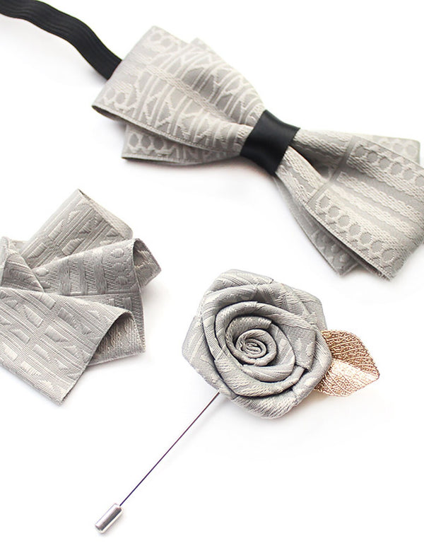 #N612034 Men's Bow Tie Solid Color Black Yellow Wine Set