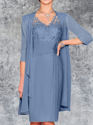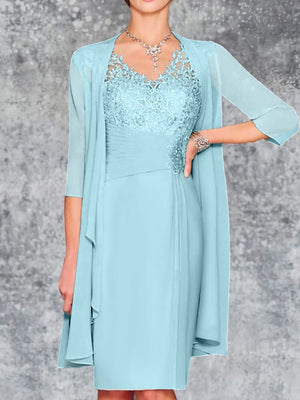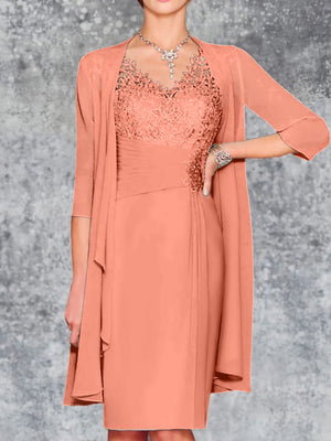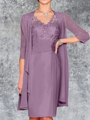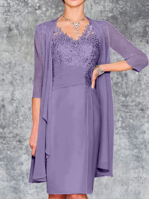 Sheath/Column V-Neck Knee-Length Mother of the Bride Dresses