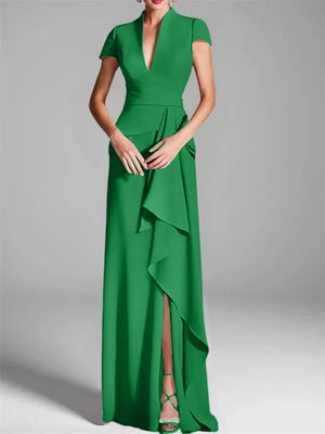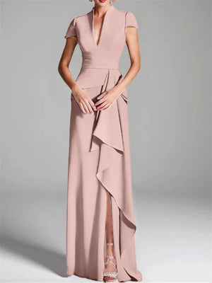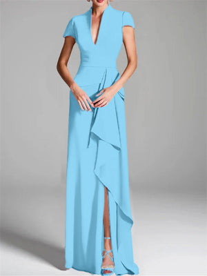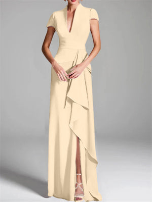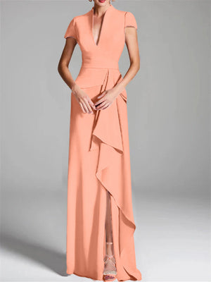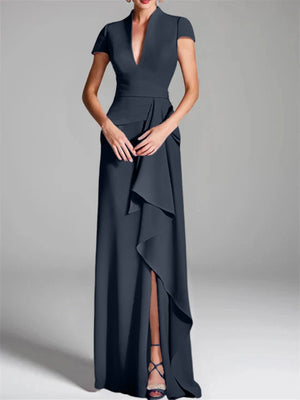 Trumpet/Mermaid V-Neck Short Sleeves Floor-Length Mother of the Bride Dresses with Split Side
