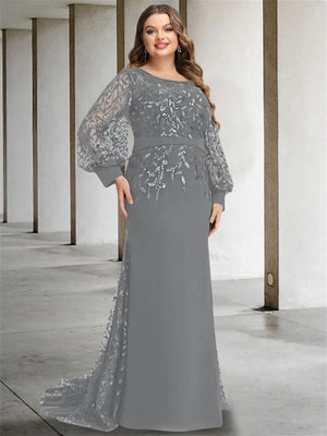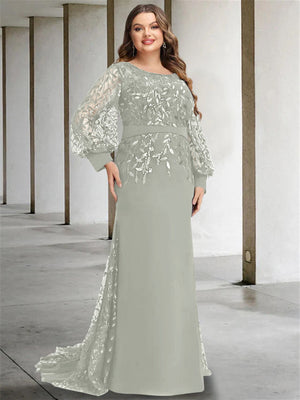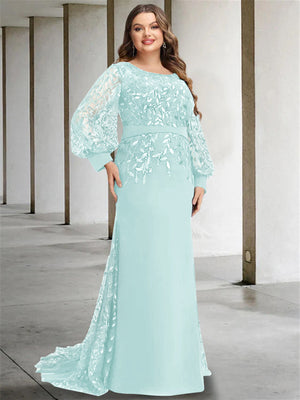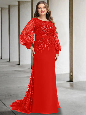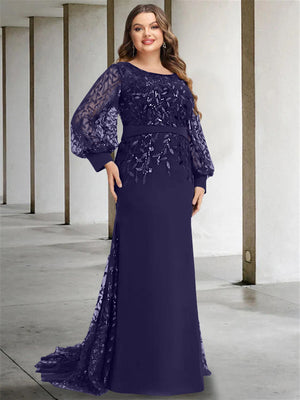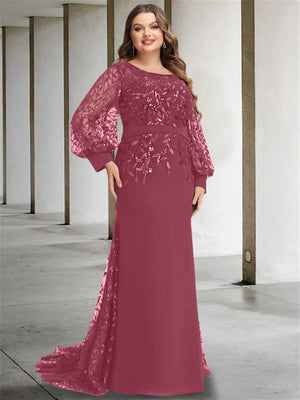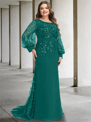 Mermaid/Trumpet Scoop Neck Long Sleeves Floor-Length Plus Size Mother of the Bride Dresses with Sequins