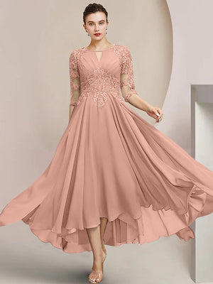 A-Line/Princess Chiffon Ankle-Length 1/2 Sleeves Scoop Mother of the Bride Dresses