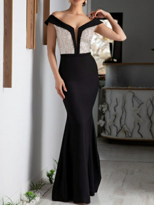 Trumpet/Mermaid V-Neck Short Sleeves Floor-Length Mother of the Bride Dresses with Sequin